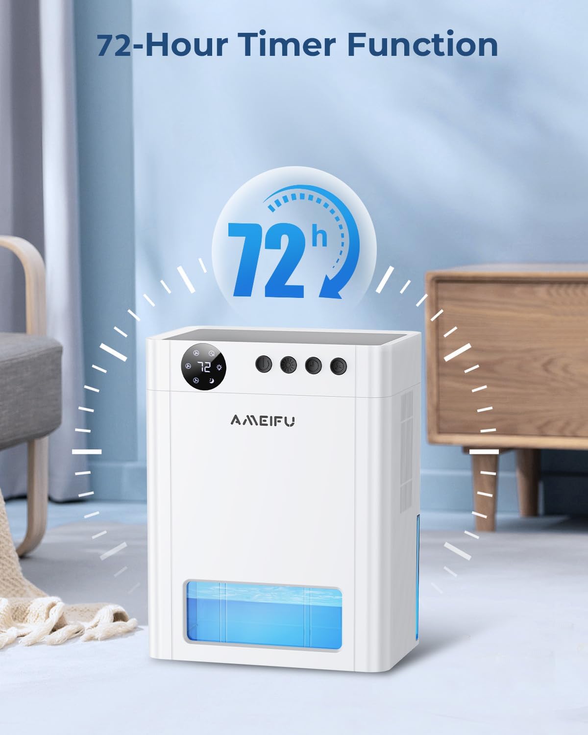 - 【Auto Shut-off】 Ameifu dehumidifier have auto shut-off feature prevents leaking or overflow when water tank is full. The red indicator flashes to remind you to empty the tank. Its auto-off function makes it be safe to use even when you are not at home.